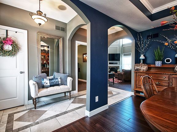 - Kitchen Island, Walk-In Closet(s), Vaulted Ceiling(s), Cathedral Ceiling(s), Eat-in Kitchen, Formal Dining Room, Crown Molding, Entrance Foyer, Tray Ceiling(s), Open Floorplan, Tub/Shower Combination, 1st Bdrm En Suite, Countertops-Solid Surf, Ceiling-9+, Stand Up Shower, Tub and Separate Shower, Jet Tub, Twin Sink Vanity, Utility Sink, Rough-In Bath, Built-In Speaker System