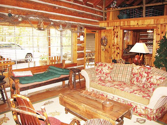 Charming log sided cabin on just under an acre adjoining grand expanse of common area for ultimate privacy and serenity. Two bedrooms and baths downstairs plus one bedroom, one bath, and loft sitting/sleeping area upstairs. Two lovely living areas with fireplaces provide flexibility for entertaining enjoyment. Kitchen and baths have been updated. Vaulted ceilings, hardwood floors, new carpeting, and covered front porch are just a few of the amenities offered in this fantastic mountain cabin.