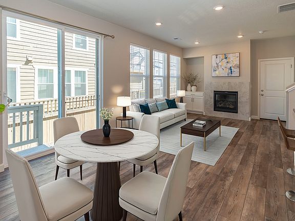 Location is everything! This beautiful KB paired 3 bedroom, 3 bathroom home is close to the parks, shopping, schools, and the hospital. includes almost 2000 feet of functional living space with a main floor office, elegant French doors and plenty of natural sunlight. Open floor plan with 9' ceilings, laminate wood plank flooring, on-trend modern clean decor. Kitchen features 8x4' Island with beautiful granite and whirlpool stainless steel appliances, upgraded cabinets, pantry shelving and plenty of storage. Upstairs opens to the light bright loft offering extra office/flex space with beautiful views. Enjoy the 3 upstairs bedrooms, two secondary bedrooms with a full bathroom. The primary suite includes a walk-in closet, en suite bath with double sinks, a raised vanity, Corian countertops, and a large bench shower. The upper-level laundry room is close to all the bedrooms and includes washer/ dryer. Enjoy central air conditioning, window coverings, 2 Car Attached Garage. Professionally landscaped with low maintenance including front lawn cutting, snow removal over 2 inches, trash removal and recycling. Also included is membership to the Taft House and the Grange Recreation Centers (2 Outdoor Pools). Renter responsible for all utilities. First month's rent due at signing. Security deposit 1/2 first month, 1/2 2nd month. No smoking allowed. Owner pays Association Fees, Ground Care, Trash/Recycle collection.