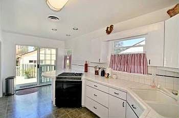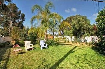 Tudor charm enhances this 3 bedroom, 2 bath beauty with over 1300 square feet, not including the detached cottage family room and workshop. The amazing lot is 12,800 square feet and is level and useable! The front yard is surrounded with wrought iron fencing and various types of drought tolerant plants including wisteria, cape honeysuckle, a rose arbor, and an African Tulip tree. The living room has coved ceiling and crown moldings, hardwood floors, a charming white brick fireplace with mantle and tile hearth, and a big bay window. The formal dining room has hardwood floors, coved ceilings and plantation shutters. The updated kitchen is white and bright with tile counters and floor, an extra deep sink and rounded breakfast bar at the end of the counters. Glass sliders to the deck and yard bring in the sunshine. There's a laundry room off the kitchen. All the bedrooms are big and the hall bath has been updated. The master is excellent with a huge walk-in closet, door to the yard and built-in bookcase/shelving. The master bath has been renovated with tile floors and walls, a granite topped sink cabinet, and an upgraded commode. The amazing yard is a gardeners dream. There are 3 patios, a built-in spa that stays and "the back 40" with fruit trees including pomegranate, plum, lemon, macadamia nut, orange, honey tangerine, pecan, and a grape vineyard. This type of lot is rare at this price! There is a long driveway on the side of the property that could fit many cars and an RV too. The oversized 2 car garage has been made into "the cottage", currently being used as a family room and separate workshop. There are so many options for this property. Extras include upgraded windows, forced air heat, upgraded electrical service and panel and a floored attic with pull down stairs. Feel like you live in the country, only minutes from downtown and the sports arena!