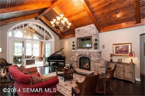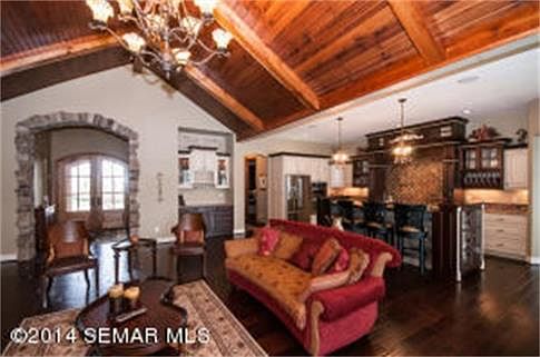 One of a kind custom designed home is warm & inviting, on lake with beach area. Soaring 16\' vaulted wood & cherry beamed ceiling accents, spacious living area with hand scraped walnut flooring & stone fireplace. Kitchen boast copper backsplash, custom walnut cabinetry & center island. Equipped chefs kitchen makes entertaining easy. Master bedroom with deck access & lake view. (See Supplement)