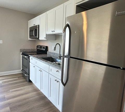 Beautifully renovated 2 bedroom, 1 bath townhouse located on quiet street in Manchester, Maryland. Freshly painted a nice, neutral gray with new luxury vinyl flooring throughout. Kitchen has new bright white cabinetry with granite counters. The large eat-in kitchen has new stainless-steel range, refrigerator and microwave as well as washer/dryer hook-up. New slider with a concrete patio in the rear with privacy fence. The living room is quite spacious and there is a storage closet under steps. On the second floor there is a linen closet in the hallway. The bathroom has been fully remodeled with a new tub/shower combination, new vanity, toilet and accessories for towels, etc. The primary and secondary bedrooms are a nice size with a large closet and ceiling fan in each. This townhouse has a new roof, windows, entry door and storm door. Nice concrete porch on the front for quiet evenings at home. There is a large parking lot and lots of green space. $1,850.00 per month $1,850.00 security deposit 18-month lease is required. Application fee is required. Owner includes trash. Tenant pays BGE monthly and water/sewer quarterly. Tenant must obtain P.O. box or pick up mail at the Manchester post office. Renter's Insurance is required. Off-street parking. Electric baseboard heat - no central air. Tenants must supply their own window a/c units. NO SMOKING PLEASE :) Owner may allow a cat with additional pet deposit.