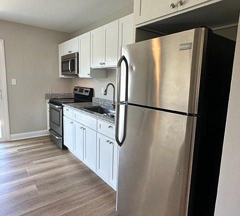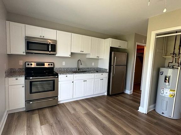 - Exterior features: Deep closet in secondary bedroom with light, Fully remodeled bathroom with new tub, medicine cabinet, toilet and vanity and vanity light, Fully remodeled kitchen with new sterile white cabinets, Garbage included in rent, Granite counters, Heating not included in rent, Heating system: Baseboard, Large primary bedroom with lighted double closet with sliding door, Lawn, New front entry door and storm door, New roof, New slider in kitchen, New windows throughout, Sewage not included in rent, Stainless-steel sink with high arc faucet, Water not included in rent