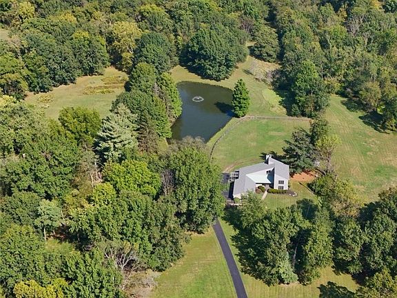 This stunning contemporary home offers the perfect blend of sophistication and country living! Over 13 acres with a private stocked pond and fountain! Expansive windows capture stunning views from nearly every room! Completely renovated kitchen with quartz counters. Well designed 1st floor primary with 2 walk in closets and 2 other large closets, large bathroom with jetted tub, shower and double vanity! Beautifully updated wood flooring throughout the home. 1st floor laundry remodel includes custom pet bath. Ample sized bedrooms upstairs along with a loft office and renovated attic area for multi-purpose,currently used as a workout room. Wonderfully cozy sunken family room with breathtaking view. 4 of the 13+ acres are mowed and manicured while the remaining acreage has walking, riding or hiking trails to enjoy! A large detached garage offers room for your adventure toys or extra cars! Welcome to where country life meets modern living!
