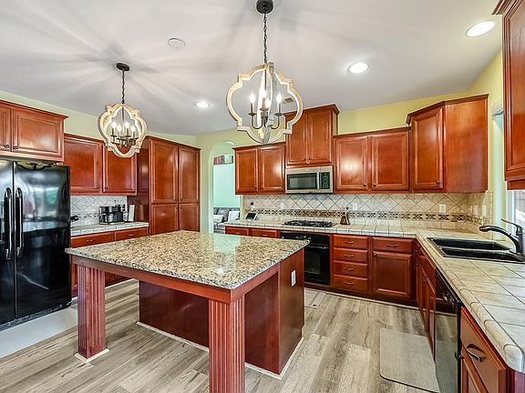 The gorgeous kitchen features beautiful granite and tile countertops, plus ample storage space. Enjoy your morning coffee at the breakfast bar or head outside to the poolside patio for a relaxing start to your day.