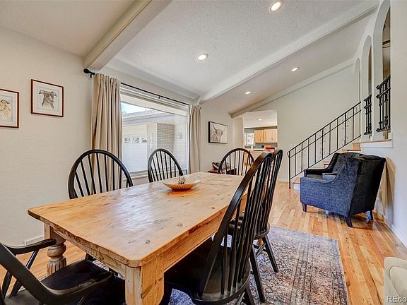 Price Reduction! Welcome to this stunning Hampden Heights 4 bedroom, 4 bath, updated home! This tri-level residence with finished basement, combines modern updates with timeless charm. As you enter, you'll be captivated by the expansive kitchen with quartz countertops, a large island with pendant lighting, and a wall of additional cabinetry that make this kitchen unique. The living/dining area features vaulted ceilings with stylish ceiling beams. Retreat to the upper level where you will find your generously sized primary bedroom with updated ensuite bath, 2 additional bedrooms, and thoughtfully re-done secondary full bathroom complete with quartz counters and modern tile. Hardwood floors abound throughout the main and upper levels. Step down to the lower level to find the 4th bedroom, powder room, and family room complete with cozy fireplace. Enjoy the additional finished basement area completed in 2020 that includes a large bonus room, 3/4 bath, nook area, and separate laundry room. Furnace, AC, and electrical panel replaced in 2021, with electric car charging in garage.