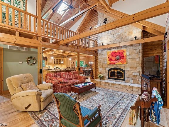 - Features: Beamed Ceilings, Fireplace, High Ceilings, Track Lighting, Vaulted Ceiling(s), Natural Woodwork
