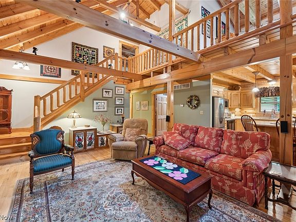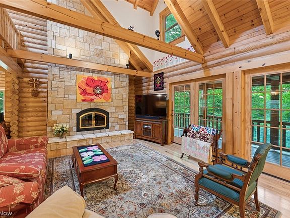 Amazing resort like home. Set back from the road about a 1/2 mile. Completely surrounded by woods and nature. Sit on the covered deck over looking the abundant wildlife and a flowing creek. Exceptional quality craftsmanship displays throughout this luxury log cabin home. Open Floor Plan with formal dining, vaulted and beamed great room with stone fireplace, gourmet kitchen with center island, breakfast bar. 2 bedrooms on the first floor one large enough to be the master bedroom along with a full bath. Convenient laundry/mud room off the garage. Upstairs the loft has endless possibilities with plenty of natural light from the skylight. The enormous master bedroom will fit all of your furniture. The master bath has a stand up shower and soaking tub. The unfinished basement is is ready for your finishing touches. The bulk head basement doors will make it easy to bring wood to the basement for the woodturner that is ducted into the homes heat system. The attached oversized 2 car garage can hold all of your things. If that is not enough room there is a 50x32 outbuilding that has 2 16x10 overhead doors. Wood/coal burner for heat, water, and a Chippewa car lift rated at 12,000 lbs. A must see!