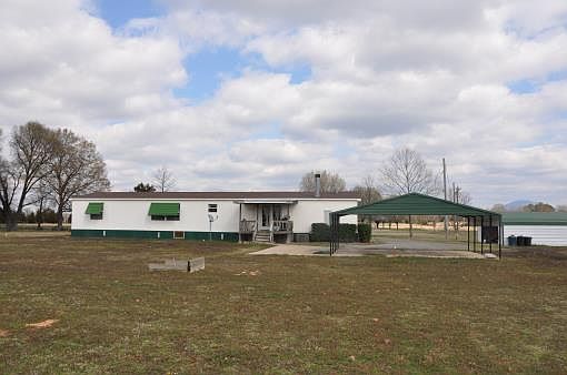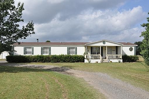 LOCATION: Located on a county road just outside of the city limits of Poteau, and only about 26 miles to the larger city of Ft. Smith, Arkansas, population about 80,000. It is ¼ mile from the Poteau River and roughly 12 miles from Wister Lake State Park. SERVICES: Electric, rural water, phone, mail delivery and LP gas delivery. LAND: The land consists of 2 acres more or less of level ground. The property is fenced so that a few head of cattle or horses can be kept if desired. This land is well suited to pasture, hay, fruit and garden crops of all kinds. The current owner has a raised garden bed in the rear yard. The land fronts a paved county road for about 210 feet. HOME: This home is a 2000 model Clayton Silvercreek manufactured home. It has a composition roof and metal skirting with the exterior painted a pale yellow and trimmed in hunter green. The home is built on six âEURœIâEUR beams with 15 yards of concrete in the foundation. The walls are 2 x 6 and have extra insulation. The home has 2,020 s.f. of heated and cooled living area and features a large living room, dining room, den, kitchen, utility, four bedrooms and two and three quarter baths. There is a covered front and rear porch. Extras to this home include a corner fireplace, crown moldings, acoustic slanted ceilings and thermal pane windows. Heating and cooling is central electric with a backup thermostatically controlled propane space heater. There is currently no propane tank on the property, but there is a gas wall heater that has been hooked up in the past. Room dimensions and descriptions include the following:LIVING ROOM: 13.2 x 19.2, Hunter green carpet, green walls, slightly vaulted acoustic ceiling and crown molding. The entry area is a white inlay. DINING ROOM: 11.9 x 13.9, Hunter green carpet, green walls, slightly vaulted acoustic ceiling, crown molding, ceiling fan with light and thermostatically controlled wall heater. KITCHEN: 10.9 x 13.2, Hardwood look inlay flooring, double stainless sink with garbage disposal, freestanding electric range with microwave oven above, candy apple red walls, approximately 30âEUR(tm) of upper and lower custom oak kitchen cabinets with formica tops and hunter green ceramic backsplashes, a built-in desk area and pantry. A seven foot formica top eating bar separates the kitchen from the den area. MASTER BEDROOM: 13.7 x 18.4, Vaulted acoustic ceiling, hunter carpet, crown moldings, eggplant colored walls, ceiling fan with light and a large walk-in closet with lots of clothing rods. MASTER BATHROOM: Hunter green carpet, floral print paper, corner garden tub, commode, separate shower, double vanity with cabinetry below, mirror and make up lighting above and an ornate octagonal shaped etched glass window above the tub. BEDROOM #2: 11 x 13.2, Slightly vaulted acoustic ceiling, crown moldings, pink walls, ceiling fan with light and a standard closet. Bedroom 2 and 3 are split by and share the bathroom described below.BATHROOM: Commode, single vanity with cabinetry below, mirror and make-up lighting above, tub/shower combo unit and inlay flooring. BEDROOM #3: 10.6 x 13.2, Slightly vaulted acoustic ceiling, crown moldings, ceiling fan with light, hunter green carpet, pale yellow walls and a standard closet. DEN: 13.5 x 2.8, Slightly vaulted acoustic ceiling, crown moldings, ceiling fan with light, hunter green carpet, red and white accented walls, corner natural stone fireplace with stone hearth and wooden mantle and a glass door leading out to rear covered porch area. BEDROOM #4: 10.9 x 13.2, Slightly vaulted acoustic ceiling, crown moldings, hunter green carpet, ceiling fan with light, white walls, standard closet and door leading to the third bathroom.BATHROOM: Single vanity with cabinetry below, mirror and lighting above, shower with seat, commode, inlay flooring and cocoa colored walls. UTILITY ROOM: 7.6 x 13.4, Inlay flooring, pale blue walls, cabinetry above the washer a