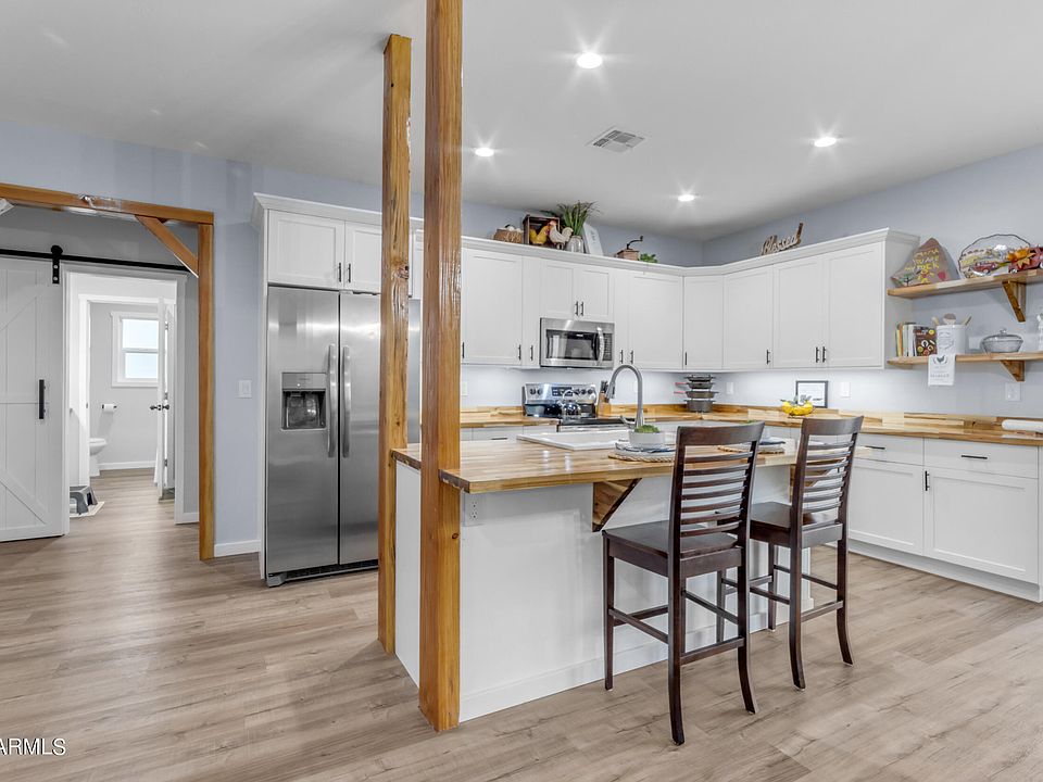 Get ready to be wowed! Welcome to this beautifully modern home with rustic accents, nestled on over 4 Acres of land with scenic mountain views! If you're excited by stylish barn doors and wood beams juxtaposed with sleek appliances and recessed lighting, you aren't alone. With Residential and Commercial Zoning, the opportunities are abundant to make your dream come to life. This perfect forever-home has a farm house on the property, ready for an Office or guest suite. Other features include a gated cattle/horse area with watering system, RV connection, and detached garage/workshop. Stop by this custom home before its gone.