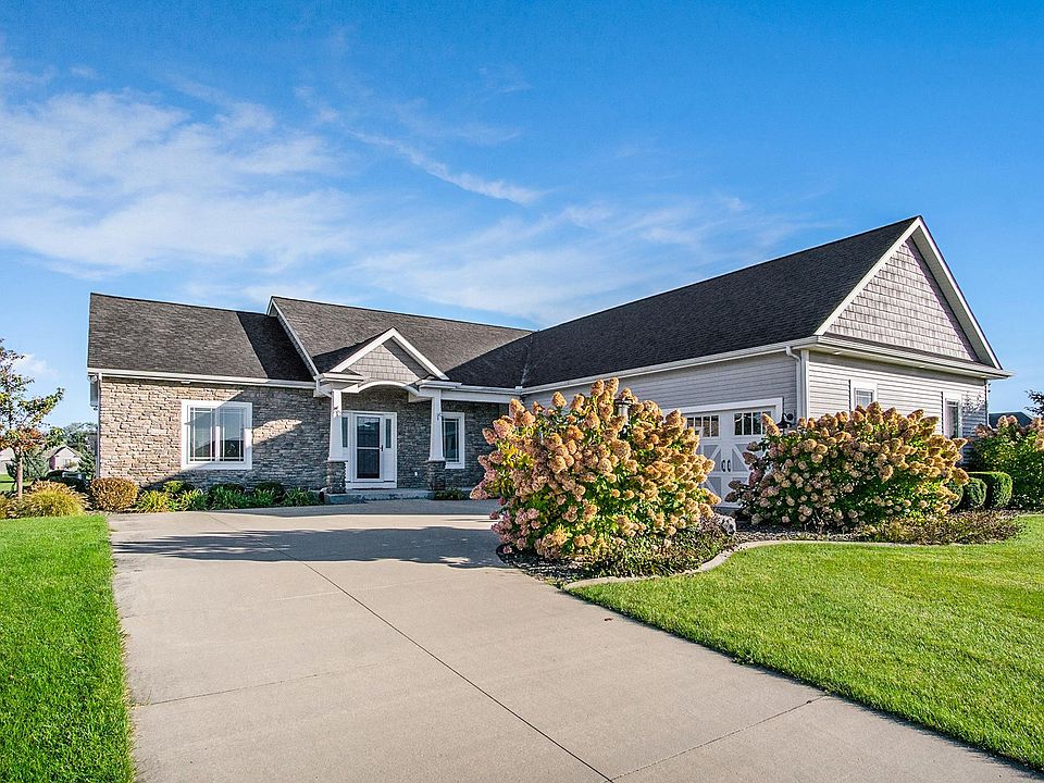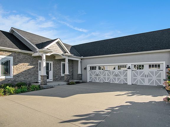 ****Spectacular Stoneybrooke Shores open concept ranch on a beautiful 1 acre lot. Great room with fireplace, hardwood floors, has set of sliders out to a large patio overlooking backyard. Stunning eat-in kitchen. Main level laundry with half bath. Split plan with private master suite on one side of house, has master bath with custom shower, and huge walk in closet. Fantastic finished basement with beautiful custom flooring, family room area, huge wet bar, one of kind home theater, 4th bedroom with egress window and full bathroom. 3 car attached garage, sprinkling system, water softner. Immediate Possession! Pre-approval letter with offers please.