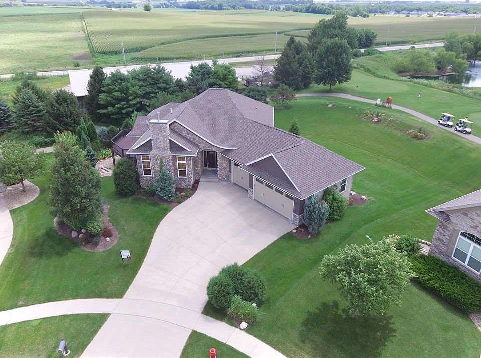 LOCATION, LOCATION, LOCATION THIS WONDERFUL MOONEY BUILT CUSTOM HOME IS NESTLED INTO A HIGHLY DESIRED CUL-DE-SAC OVERLOOKING THE POND AT THE 7TH GREEN OF THE HUNTERS RIDGE GOLF COURSE ON JUST SHORT OF A HALF ACRE LOT, FOUR BEDROOMS, THREE AND A HALF BATHS, OVER THIRTY FIVE HUNDRED FINISHED SQUARE FEET OF LIVING SPACE, VERY OPEN GREAT ROOM WITH STONE GAS FIREPLACE, CHEF INSPIRED KITCHEN WITH LARGE GRANITE COUNTER TOP, WALK-IN PANTRY, BRAZILIAN CHERRY WOOD FLOORS, APPLIANCES INCLUDED, MASTER BEDROOM SUITE INCLUDES STEAM SHOWER DOUBLE VANITIES, LARGE WALK-THRU CLOSET TO MAIN LEVEL LAUNDRY, CENTRAL VAC, WHOLE HOUSE SOUND SYSTEM, LOWER LEVEL HAS TWO MORE BEDROOMS AND IS PERFECT FOR ENTERTAINING IT HAS A WET BAR AND WALKOUT TO PATIO AREA AND LAWN POND WITH SOOTHING WATERFALL, LAWN IRRIGATION SYSTEM, OVER-SIZED THREE STALL GARAGE WITH LARGE OVERHEAD STORAGE.