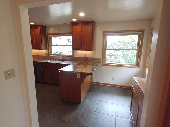 - Features: Dishwasher, Eat Bar, Gas Appliances, Nook, Updated Remodeled, Free Standing Range, Free Standing Refrigerator, Solid Surface Countertop, Tile Floor