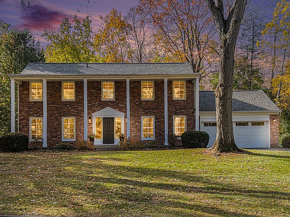 Tucked away on a quiet road overlooking the scenic Huron Hills Golf Course and Woods, this stately home offers timeless elegance in one of Ann Arbor's most prestigious neighborhoods. Set on a generous half-acre corner lot, this home welcomes you with a regal circular drive and a covered front porch framed by classic columns. Inside, the large foyer is flanked by formal living and dining rooms, perfect for entertaining. At the back of the home, a beautifully renovated chef's kitchen opens to the family room with a gas fireplace. The kitchen is a true masterpiece, featuring multiple workstations, granite countertops, high-end stainless-steel appliances (including a Viking range and Jenn-Air double oven), and a charming breakfast nook with built-in window seat overlooking the yard. The adjacent mudroom with a convenient workspace for homework or bill-paying, drop-zone cubbies, and pantry adds everyday convenience, as do the two main-level half baths and attached 2-car garage with 220V outlet ready for your EV charger. Both the living and family rooms provide access to a cozy enclosed porch - ideal for year-round gatherings - and the new 40-foot patio extends your living space outdoors, offering a private retreat surrounded by nature. Upstairs, you'll find four generous bedrooms and two updated full bathrooms with luxurious heated floors. The primary suite features dual closets, a private balcony in the trees, and a tastefully updated en suite bath with two sinks. A convenient laundry room completes the upper level. The full basement offers ample room for recreation, hobbies, or media, with space for a projector and screen plus abundant storage. Recent updates include high-end Marvin windows, expertly refinished wood floors, fresh paint and lighting throughout, newer roof, high-efficiency furnace, new water heater, and whole-house surge protection. Experience the best of both worlds - peaceful privacy and a central location just minutes to downtown Ann Arbor, the University of Michigan's central and medical campuses, and the area's most sought-after schools. Enjoy wooded trails in summer and Ann Arbor's best sledding hills in winter, right outside your door. All the major updates have been done so you can move right in and enjoy celebrating the holidays in your new Ann Arbor Hills home. Schedule your showing today! Home Energy Score of 2. Download report at osi.a2gov.org/herd.