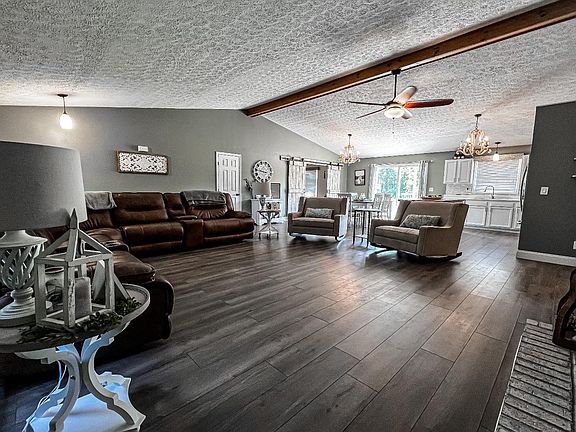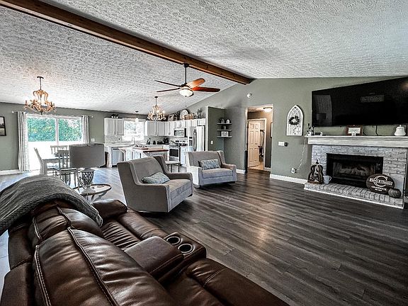 Come check out this immaculate 3 bed, 2 bath, brick ranch situated on a private 5ac lot. This home features cathedral ceilings as soon as you open the door, leading you to an open concept living area with a beautiful eat in kitchen and dining room that walks out to an oversized deck. The barn doors leading into the family room give you that farmhouse feel! This home also offers a 2 car attached garage as well as a 30x24 detached garage with electric and shelving, perfect for a workshop!