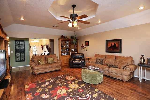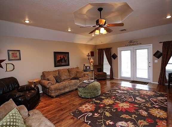 Pretty 3BR 2BA brick home on 4.9 acres, fenced. 2156 SF with large living area and roomy kitchen. Covered front porch and back patio. Storm cellar. Workshop, barn area and shed.