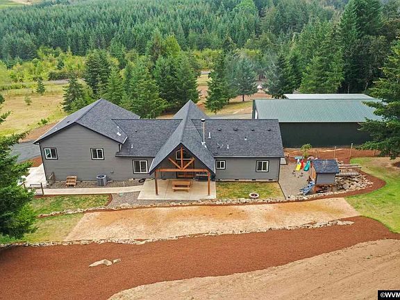 Accepted Offer with Contingencies. Gorgeous custom home on 5.78 acres just minutes from town! The Seller built this home as their "forever home" sparing no expenses. Open floor plan features reclaimed barn wood floors, vaulted ceilings, beautiful stone floor to ceiling fireplace. Huge kitchen island W/granite counters, knotty Alder cabinets & large S/S Frig. Vaulted covered back patio, fully fenced backyard WUGS. All the room you need for your toys, extra tall garage doors, huge 2880 sq ft shop W/3 large bay doors. See Associated Docs