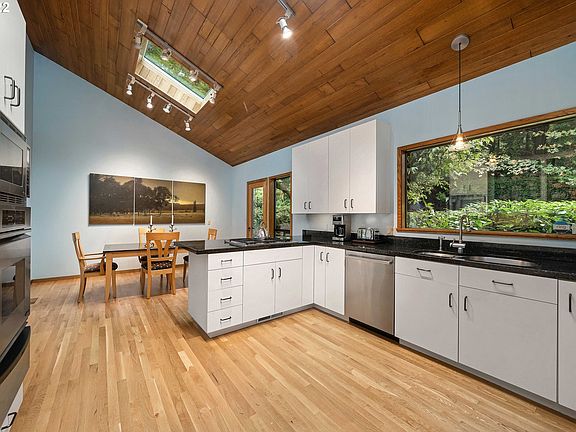 Classic example of Northwest Regional architecture with high ceilings, warm woods & an abundance of windows allowing for light filled rooms as well as enhancing the connection between the interior and exterior landscape. Beautiful entertainment spaces inside & out with multiple decks in a private, park-like setting. Easy living & versatile layout with primary suite on the main level, plus a second en suite in the lower level for guests. Den/office on main floor could be 4th bedroom. [Home Energy Score = 1. HES Report at https://rpt.greenbuildingregistry.com/hes/OR10205497]