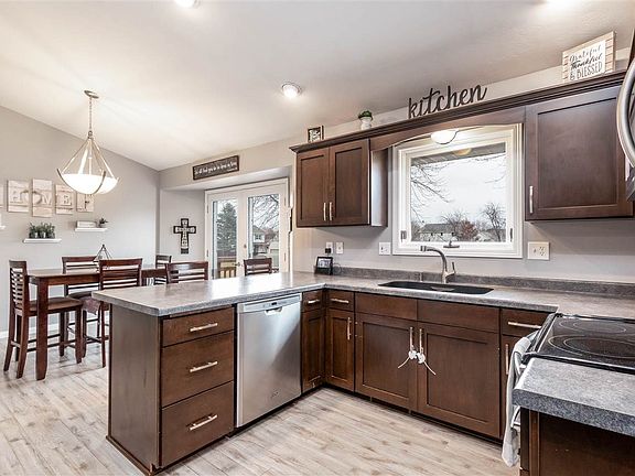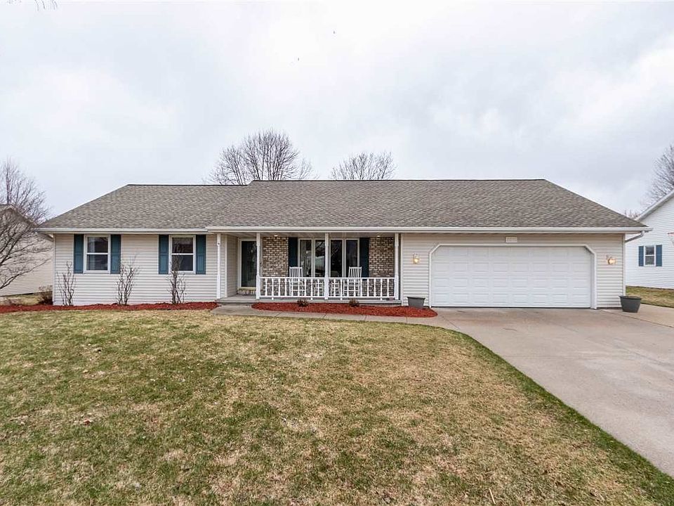 Well maintained 3 bed Howard ranch on extra deep lot and quiet street. Home features open concept design with cathedral ceilings. Updated kitchen, furnace, roof, and flooring in living room and kitchen. Partially finished lower level with potential full bath that is stubbed with finished walls and seller will provide flooring. Extra deep and private yard with large storage shed. Oversized deck and patio. Extra deep 2.5 stall attached garage. Kitchen appliances included.