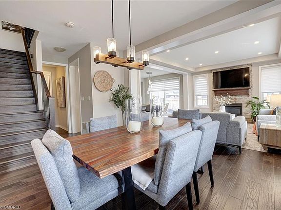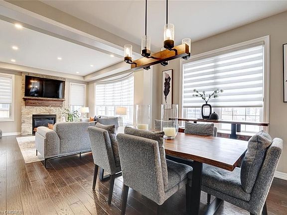 Exquisite Tudor Mattamy built family home on premium lot in “The Preserve”. Thousands in upgrades spent including hardwoods, coffered 9’ ceilings, pot lights & premium fixtures, this nearly new 4 bedroom, 3.5 bathroom home is a must see! The main floor is bright & airy with ample windows throughout the open concept dining, family room & eat-in kitchen with separate living room/den. The kitchen has upgraded granite counters & backsplash with island / bar, b/I appliances & Smart Fridge. On the 2nd floor you will find 2 generous bedrooms sharing an upgraded 4pce jack & jill bathroom. The 3rd bedroom has use of the main 4pce bath. Between the bedrooms is a unique shared space to act as the kids den/study area. The sumptuous primary suite has a large walk-in closet with organizer & a fully upgraded 5pce ensuite bath. A separate laundry room on the 2nd floor makes life a little easier as well. The front exterior entrance has been upgraded with beautiful hardscaping & lighting, while the fully fenced premium size backyard has a large patio with in-ground lights. Close to all amenities, shopping, & highways. Don’t miss!