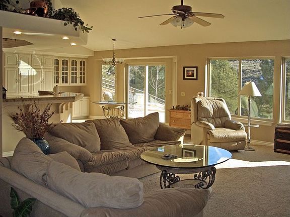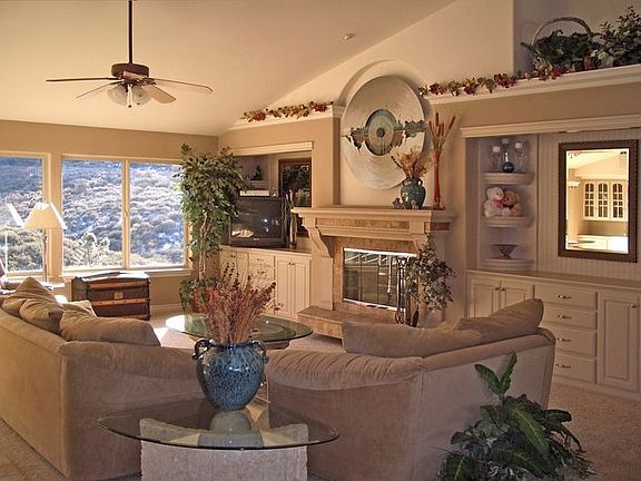 3 BD, 2 BA, 2 car garage w/ approx. 2667 sq ft of living space is located on approx. 2.17 acres. Home has open floor plan, vaulted ceilings, pot shelving w/ indirect lighting, granite tile w/ full stone backsplash, oversized FP, remote control dual glazed skylights, in-floor heating, spectacular views from bedrooms & living room.