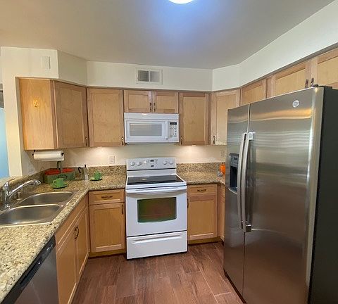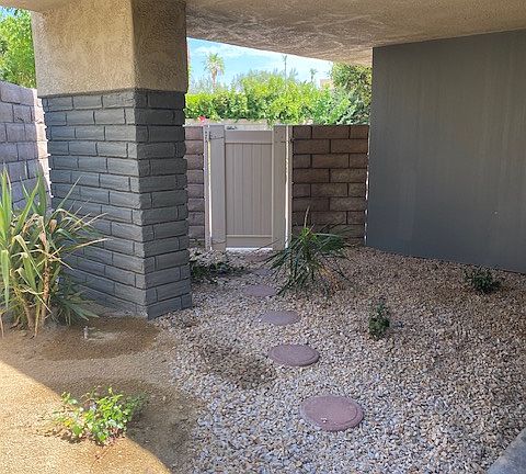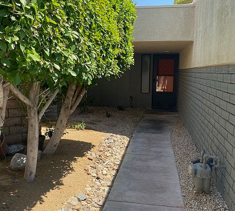 Discover your new Palm Springs home at the lovely Sunrise Palms. This beautifully landscaped complex is perfectly situated for work or play. With beautiful mountain views. This single level condo is in a great location. The backyard is beautifully landscaped with two concrete patios. The Interior has been recently updated. Wood flooring throughout, and wood shutters on all windows. Kitchen has granite countertops, and a cozy space off of the kitchen that could be used as a little office. Main room has a large walk-in closet and track lighting. Condo has a one car garage, with washer & dryer included. This is a must see! Don't hesitate to call for a tour. 12 month lease No smoking No prior evictions Income requirements 3 times the rent. We don't accept Zillow online applications. We will send you an application via email. Pets allowed with additional deposit and pet approval $300 move in special Call for further details