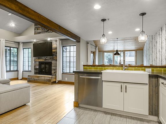 Roomy, 3-level condo with approx. 2,080 sf of living space, 2-car garage, & a fenced yard. Remodeled with rustic mountain flair including soft-close cabinets, stainless appliances, oak floors, subway tile, euro glass, quartz counters, & reclaimed barn wood. Carpet, paint, blinds, roof, & concrete driveway are all about 2 years new. Open floor plan on the main level with dining, living, & kitchen. Farmhouse sink, new light fixtures, tile flooring, & bar seating in the kitchen. Living Room has vaulted ceilings, ceiling fan, & reclaimed wood slat fireplace. Dining opens to the deck, for fresh mountain air and expanding your space. 1 bedroom & bath also on main level. Upper level has 2 bedrooms, including master with barn doors to the extended bath. Lower level has the 4th bedroom with full bath, plus laundry & mud room off the garage entry. Plenty of storage in this unit. Short drive to I80 & Hwy 224, minutes to downtown Park City, ski resorts, & a 40-minute drive to Salt Lake Airport.