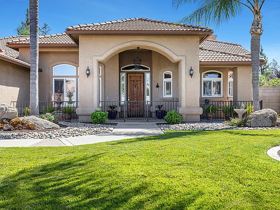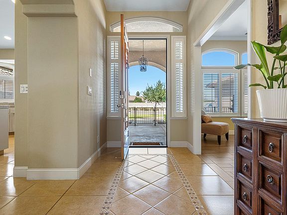 You will be impressed just driving up to this house and will continue to be impressed upon entering! Your attention is immediately drawn to the splendid combination of tile and beautiful Spanish wood-like tile flooring, wide baseboards, plantation shutters, crown molding throughout the house and the overall feeling of home. The open floorplan kitchen and great room greet you upon arrival and are perfect for entertaining or comfortable family gatherings. The kitchen offers double ovens, a microwave and gas stove. The wide hallway leads you to the guest bath, laundry room, two bedrooms and the master bedroom sanctuary with a jetted tub, a cedar-floor walk-in closet, a relaxing fireplace and much more. The house also has surround sound speakers with a built-in radio and disc player.The generous 10,018 square foot lot has everything you would want in a backyard - a sparkling inground swimming pool, outdoor bathroom, and large patio area for entertaining in the side yard. Off the covered patio is a lovely grassy area. Don't forget to follow the stone path to another side yard complete with a bbq area and fruit trees. This well-designed backyard provides the ideal mix of fun, entertainment and relaxation. The four-car garage, one with drive-through, offers plenty of space for your cars, storage and additional sport vehicles. With no houses across the street, there is plenty of extra parking for guests. This is a house you can truly call HOME! Make your appointment to view this beautiful home today.