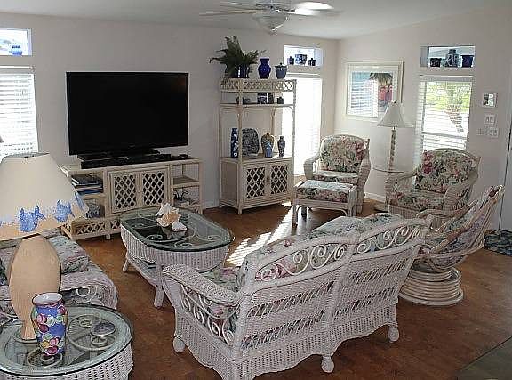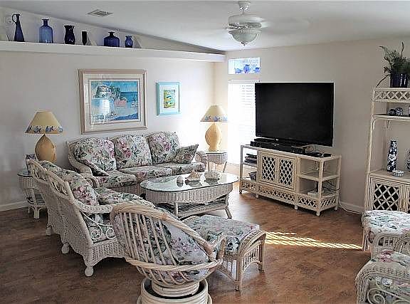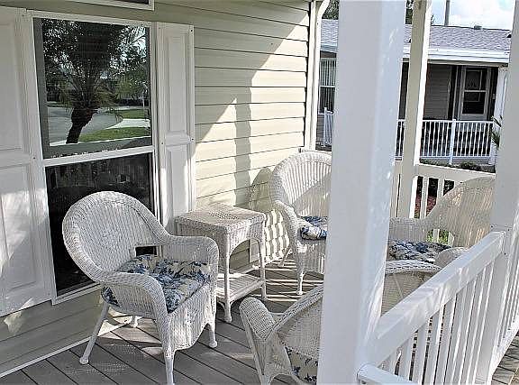 3 BR 2 BA 1596 SQ FT home. Fully furnished, Great open floor plan, Perimeter lot for privacy, Newer Cork Floors throughout, covered front porch, newly painted cabinets, painted double driveway, extra large 400 sg ft lanai for entertaining, extra deep double garage, Beautiful landscaping, Priced to sell!.