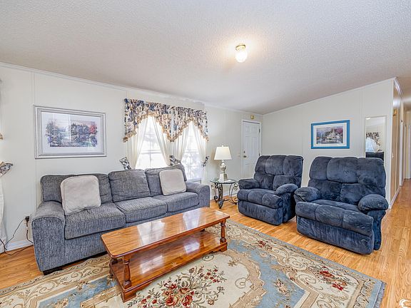 This spacious three-bedroom, two-bath manufactured home is nestled on a generous 0.52-acre lot, featuring brick underpinning. It boasts a charming rear porch, overlooking a vast backyard and a detached storage building. Inside, you'll find a capacious living room with a vaulted ceiling and ceiling fan, seamlessly connected to a large kitchen and dining area. All the bedrooms are generously proportioned, with the master bedroom showcasing a vaulted ceiling and a master bath complete with a sizable soaking tub, walk-in shower, and double sinks. The property comes fully furnished and is free from HOA restrictions, making it an inviting and hassle-free home. Don't hesitate; call today to arrange a viewing.