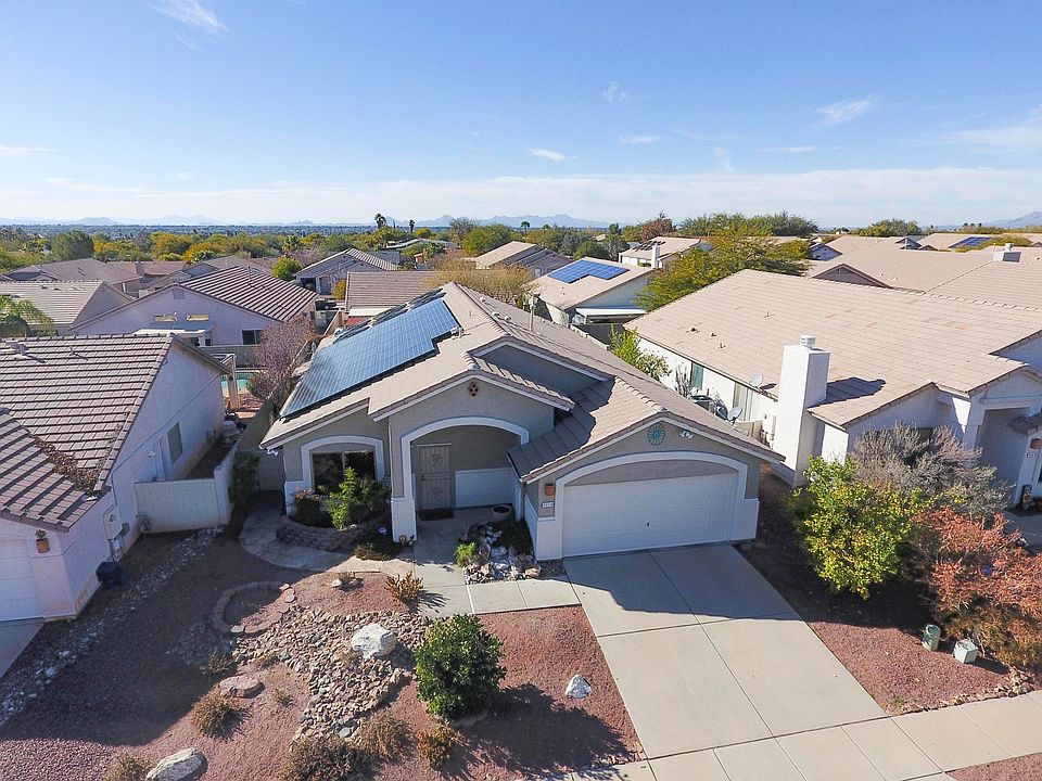 HONEY STOP THE CAR! This is the one. Spacious open floorplan w/ Great room & Kitchen island. Meticulously cared for, 3 bedrooms 2 baths, Laundry room (washer/dryer inc.), 2 car garage w/ painted floor, Solar panels on the roof to keep the bills down (leased from Solar City/ buyer to qualify), Sparkling Pool w/ solar heating & in-ground Spa in backyard w/ Built in BBQ on covered back patio, Landscaped w/ Luscious lemon & Grapefruit Trees that produce amazing fruit & low water usage plants. Rose bush makes the loveliest smelling flowers. Gourmet Kitchen w/ extra thick granite slab, Reverse Osmosis water system, Stainless steel appliances inc. Fridge, Gas stove, microwave, & Dishwasher. Vaulted Ceilings, Formal Living room in front. Cold AC with 410A refrigerant. Low HOA is only $14 per mo.