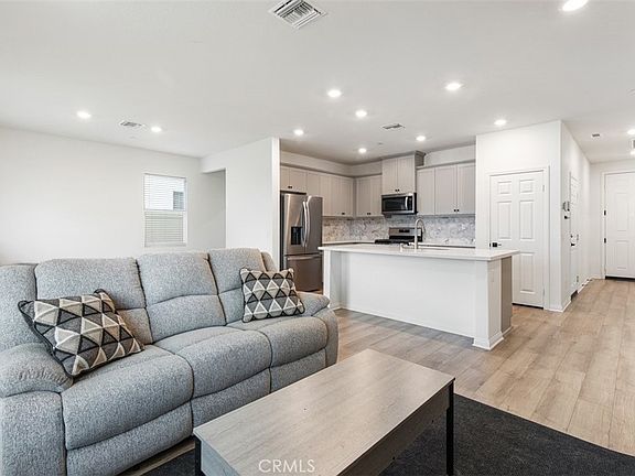 Welcome to this beautiful home located in the newly build community of Cheyenne at Olivebrook. This stunning home at 30760 Vera Cruz Cir. offers modern comfort with an open-concept layout, eight-foot ceilings, and updated features. Built with efficiency in mind, this home includes ENERGY STAR® certification, smart thermostat, and a PAID-OFF solar energy system. Durable finishes such as vinyl flooring and tankless water heater. Located within the charming Cheyenne at Olivebrook neighborhood, residents enjoy a balance of small-town living and modern convenience with nearby shopping, dining, entertainment, and easy freeway access to I-15 and I-215. The gourmet kitchen is a true centerpiece, featuring granite countertops, a spacious center island, stainless steel appliances, and a convenient USB charging receptacle. The primary suite provides a relaxing retreat with dual vanities, engineered stone countertops, and a private glass-enclosed shower, while the secondary baths are appointed with the same quality finishes.