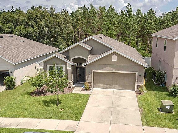This beautiful charming home is located in the quaint neighborhood of Sherman Hills. A Golf course and country club community. Easy access to Tampa! An elegant flowing floor plan once you enter the home. The light and bright living and dining room area at the front of the home has wood floors and calming colors. Keep going and you will find yourself in the spacious kitchen area. The kitchen is complete with oversized wood cabinets, stainless steel appliances, granite counters, recessed lighting and tile floors. The breakfast bar overlooks the comfortable family room where the wood flooring continues even down the hallway. The guest bedrooms are a comfortable size and provide carpeting for added comfort. The master suite is every bit of sweet! Plenty of space to accommodate large furniture and a walk-in closet. The Master bath has dual sinks, a sunken tub for relaxing, and a walk-in shower. Take the slider doors out to the beautiful lanai. This well-kept area is large enough for entertaining and the perfect spot for ultimate relaxation. The fenced in yard is great for privacy but still gives you the views of forest in your back yard. No rear neighbors! Leave that winter coat behind and start enjoying this home.