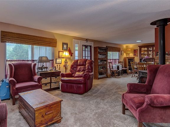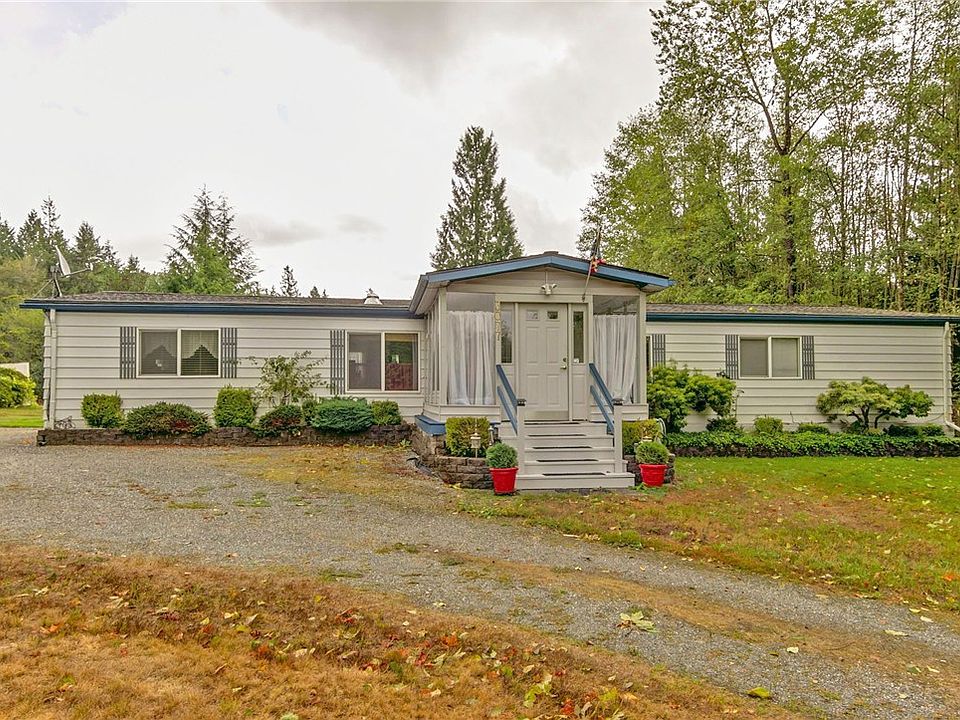 A bit of country living on private 5 acres. Just minutes from I-5, nestled in horse country. This 1755 sq ft home features 4 bedrooms, 2 baths, large Sunroom, Enclosed front porch, Master suite with Jacuzzi. Spacious back deck overlooking your acreage. Shop with 2 bays & Work area. Numerous other outbuildings for storing your toys. Drive into the circular drive and you'll see County living at its best!