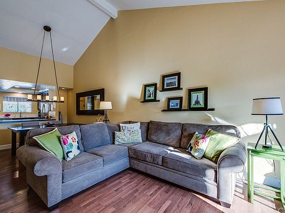 Rarely on the market,this Via Valencia 2 bedroom,2 bathroom upper unit in an interior & quiet location,boasts a light, bright & open floor plan w/ elegant hardwood flooring,soaring vaulted ceilings,Newer HVAC system & wonderful patio w/ views of green belts,trees & pool,all in the Beechwood school attendance area.The moment you walk in,you will be pleasantly surprised by the wide-open space & designer touches,spacious bedrooms & a master suite with an en-suite bath.Wonderfully spacious kitchen has inverted tray ceiling,recessed lighting,rich wood cabinetry,large pantry,stainless steel whirlpool 4 burner range,gold series dishwasher, new microwave,even breakfast bar!Large formal dining room w/ beautiful chandelier, all opening to spacious living room w/ natural stone fireplace accented by wood mantle and glass slider to patio. Oversized Master bathroom has extra-large vanity, marble countertop, tile flooring, tiled shower walls! Master bed has large picture window & triple mirror wardrobe sliders. Secondary bedroom also has mirrored door sliders,lighted ceiling fan & hallway bathroom has dark wood cabinetry & unique custom lighting fixtures along w/ oversized tile flooring.Recessed lighting,designer paint,Extra tall baseboards.2 car garage has room for cars and storage & is only steps away! This popular and well-maintained community has only 38 homes in a serene Mediterranean style setting and features lovely architecture, guest parking, green belts & central pool & spa area.