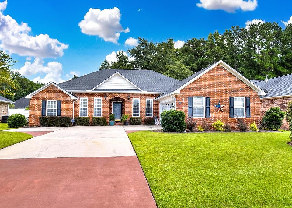 Welcome to the pride of Carolina Palms with this custom built Wilkes designed 4 bedroom 2 bath split floor plan home with a dedicated office. This unique design includes 9 ft ceilings extending to the dining room with beautiful chair rails and wainscoting. The open floor plan invites you into the spacious great room with cathedral ceilings, gas fireplace and warm colors that add to the charm of this gorgeous home. The well appointed kitchen boasts tasteful granite countertops, SS appliances, & a dining area all open to the great room. The master wing includes a walk in closet, masterbath with soaker tub & walk in shower + dual sinks and a spacious master bedroom. There are 3 other bedrooms and the office on the opposite side of the home. Beautifully landscaped, fenced yard. HOA Includes: Front entrance maintenance