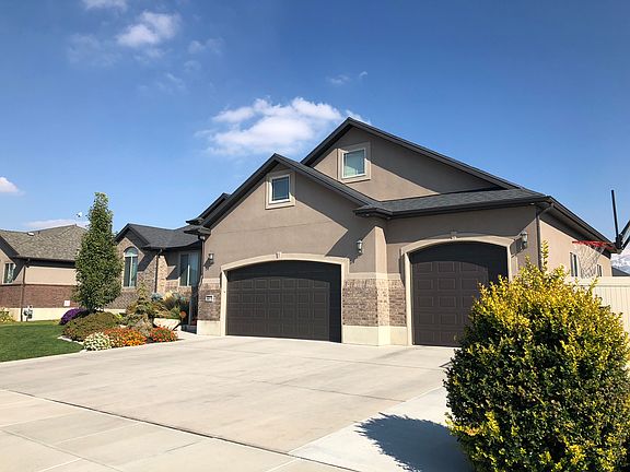It features 5 bedrooms and an additional hobby room that can be used as a bedroom. With this West facing home your backyard will be shaded in the evening to relax & enjoy time by the gas fire pit. There are lots of built in shelving for storage in the garage & cold storage room. This home also is in an incredible neighborhood with amazing schools! Open floor plan. 4 Car Garage w/workshop & storage. Vaulted Ceilings. Jetted tub in Master Bath. Large Bonus Room above Garage. Granite counter tops throughout. Stainless Steel Appliances. Fireplace. Professionally designed yard w/gas fire pit. Fully fenced yard w/cement mow-strip. RV Pad. Professionally finished basement with walkout. Large Kitchenette in basement. Hobby room. Faux brick playhouse under basement stairs. Composite roof.