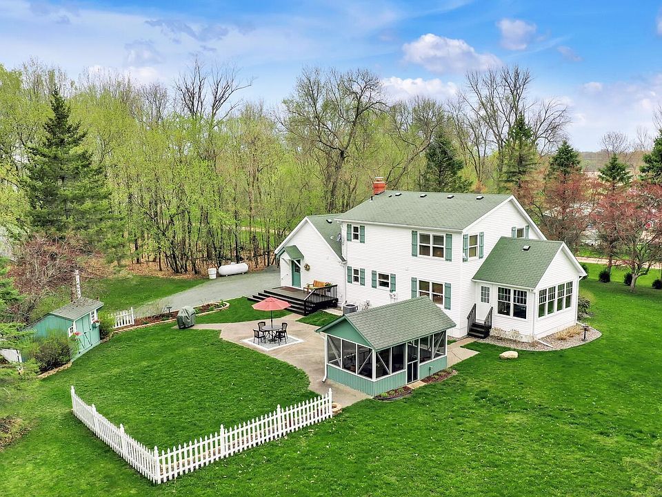 ****MULTIPLE OFFERS RECEIVED - HIGHEST/BEST BY 7:00 PM SUNDAY MAY 15,2022****RESPONSES BY NOON MONDAY 5/16****Pride of Ownership gleams throughout this lovely home on 5 partially wooded and open acres - and yet only 45 minutes to Twin Cities - 10 mins to Taylors Falls/St Croix River- So very much to love about this property! Enjoy the summer evenings in the outdoor screened house - and winter evenings in the light-filled sunroom! Garden shed plus 24x28 raised vegetable garden-blueberry bushes-Family room with built-in wet bar-Entryway area with front porch - Living room and formal dining rooms with wood floors-Eat in Kitchen with pass-through pantry area. Upstairs bedrooms are spacious with large closets - Loft area for a desk or reading space. Large full bath-The lower level has a newer egress window where a 3rd bedroom could be added or incorporated with the exercise room-See items listed in the disclosures. 3 car oversized 30 x 48 insulated garage with workshop and metal roof