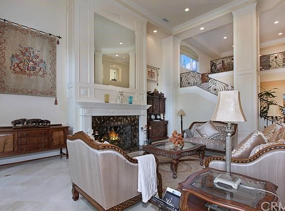 Set amid 1.5 sprawling acres in the exclusive, equestrian zoned, guard gated community of the Hunt Club, this almost 7,400 sq. ft., 5 spacious bedrooms, 6 1/2 bath estate provides both indoor/ outdoor living with tranquil ambiance. As you enter this newer constructed residence through the oversized solid mahogany wood, glass and wrought iron double doors you'll immediately notice the elegant, grand foyer and formal living room with 22 ft soaring ceilings. No attention to detail has been spared with Spanish green rose granite, Brazilian hard wood and marble floors, solid cherry cabinetry and built ins throughout. Additionally there is a formal dining room, executive office with coffered ceilings, guest wing, 12 ft wet bar and breakfast nook on the main level. The gourmet kitchen opens up to the great room which features an expansive granite center island, top of the line appliances and a breakfast nook looking over the pool. The master suite has a private balcony with panoramic mountain, backyard and ocean views, fireplace, large walk in closet and luxurious bathroom. The backyard is prefect for entertaining with outdoor kitchen, pebble tec pool and spa with cascading natural rock waterfall, tennis court that is newly resurfaced, gazebo and fire pit.