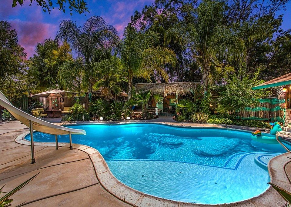 Location, Location, Location, one acre paradise in the heart of Menifee! Welcome to 30773 Old Windmill Road, you are going to fall in love with this Mid Century 3 bed 1 bath home. Step through the gate and past the oleanders into this amazing home that has so much to offer, spacious living room and step down family room, gorgeous newly remodeled kitchen with Caesar stone quartz counter tops and stainless steel appliances, bright natural light flows through out the home, new flooring in the kitchen, living room and dining areas, inviting fireplace in the living room and built in shelving. Roof and A/C are approximately 10 years old, and a 2 car garage. Step outside to the backyard and the enchantment begins, a charming 20 x 20 cottage with covered porch could be used as an office, craft room or extra bedroom, large 12 x 12 shed for storage, and a potting shed for gardening. Now lets enter into the "Tiki Lagoon" where your outdoor entertaining begins, slide down the slide and splash into the refreshing swimming pool. Amazing covered outdoor kitchen with BBQ, sink and refrigerator, covered outdoor living room with TV and a separate gazebo covered bar for those refreshing cold drinks, amazing outdoor living areas to be enjoyed by friends and family. Oh did I mention room for the horses too. All of this is located on an acre of property with room to add your own vision.Hurry this amazing property won't last!!! Close to shopping and dining.