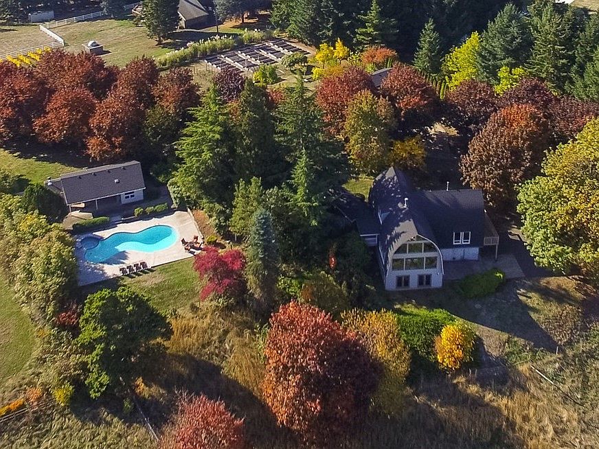 Instantly feel at home in this updated, gated retreat. The spacious great room has an open concept floor plan, that's accentuated with stunning exposed beam cathedral ceilings. With a wall of windows and abundant natural light, enjoy the changing of the seasons with the unobstructed views of the mountains, valley and twinkling city lights. From the great room, finished basement, poolside patio, and park-like grounds, you can entertain all year surrounded by incredible views and peaceful sounds of nature. All structures have new roofs. A 645 sq ft fully remodeled guest house has a full bathroom, including a soaking tub, and is plumbed and wired for a kitchen. Heated swimming pool and spa are complete with huge patios and privacy. The 25x36 three bay shop has an additional 830 sq ft unfinished second story. Attached and detached 2 car garages, plus 2 carports allows for ample parking for guests or recreational vehicles. Gardener's delight with 24 raised beds, grapes on the arbor (plus 12 vines, blueberry bushes and a small orchard with 5 different varieties of fruit trees. Multiple quality animal shelters and a ready to plant, winterized garden, you are ready for as much of a sustainable lifestyle as you'd like. This property truly has it all.