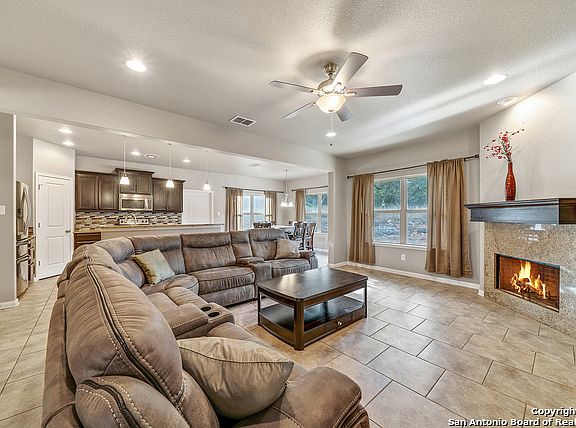 Serene 4 bed/3 bath home located in hill country neighborhood of Oak Village North. Nestled on 3/4 acre with room to roam! Open kitchen offers gleaming granite counters, rich espresso cabinetry, & SS appliances. Spacious living room w/ fireplace + two dining areas are ideal for hosting your favorite gatherings. Private master retreat w/ double vanity, shower, & garden tub, PLUS 2nd bedroom + additional full bath on 1st floor. Bed 3, 4 and game room/loft up. Soak up the sun on the extended patio and relax!
