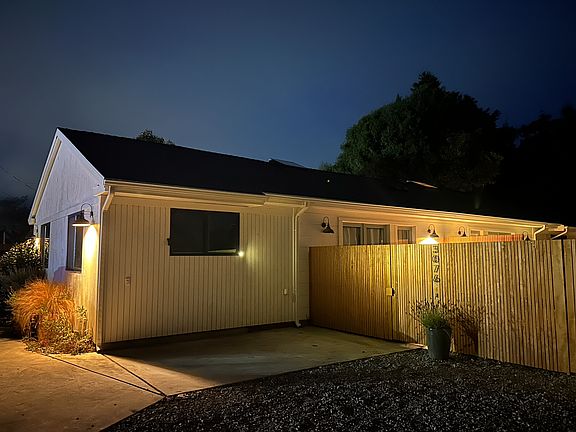 This unit was designed to capture as much sunlight as possible! Located in Arcata, 3 bedrooms/2 baths. Very high ceilings. One bathroom (fitted with a full bath) is attached to the primary bedroom which has an extra closet, more square footage, a south facing skylight window, and private entrance to outside via a french door. Other bathroom is off the living room next to the other 2 bedrooms. 2nd bedroom has two windows (one south facing and one east facing) and a large closet. 3rd bedroom has one east facing window and a large closet. The living room is awash with sunlight thanks to the 3 full length south facing french doors. Each room in the house has a mini split heating system with a remote to personalize the rooms' heating experience. Brand new washer and dryer in unit. Freshly renovated 2 years ago with all new drywall, insulation, heating system, hardwood flooring, tile, electrical, appliances, windows, fixtures, etc. All done to code. New roof was put in just a few months ago with an updated ventilation system that helps avoid the Arcata mustiness. House is completely fenced in from street. 3 on-site parking spots in driveway available. Yard was recently planted with yard maintenance provided by owner. Concrete fire pit. Garden beds for planting. Outdoor lounge chairs. Large wood deck perfect for sun-bathing. Close to Murphy's market (0.4 miles away), Cal Poly Humboldt (1 mile away), Community Forest (2.6 miles away), Mad River Beach (4.8 miles), Arcata Downtown Plaza (1.7 miles). Year long lease. Owner pays for internet and trash. Tenants pay for water/sewer and power/gas.