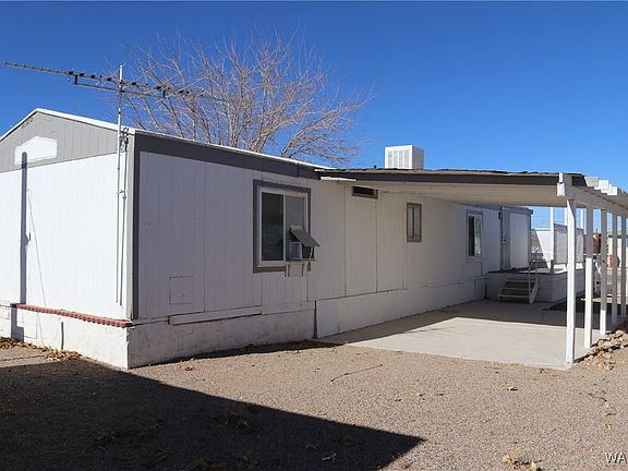 Great partial furnished starter home. Here it is your first time home buyer, or investment property. This single wide manufactured home is located on a wide street with plenty of on and off street parking. Home is cooled with a swamp cooler and window units. Heat is a forced air gas furnace. The interior features a casual dining area in the front kitchen. The living room space leaves plenty of options for furniture placement. A office space den area could be adapted to be a second bedroom. There are two bathrooms with the master bath sporting a garden tub. Outside the property has a storage shed/ workshop for projects you may be considering. There is covered parking at the carport which is close to the front door and the oversized front porch. There is room for a walkup ramp if you might need in the future. A double gate in front gives wide access to property. The rear of property backs to an alley. This property could be ideal for you. Located in the north end of Kingman Arizona.