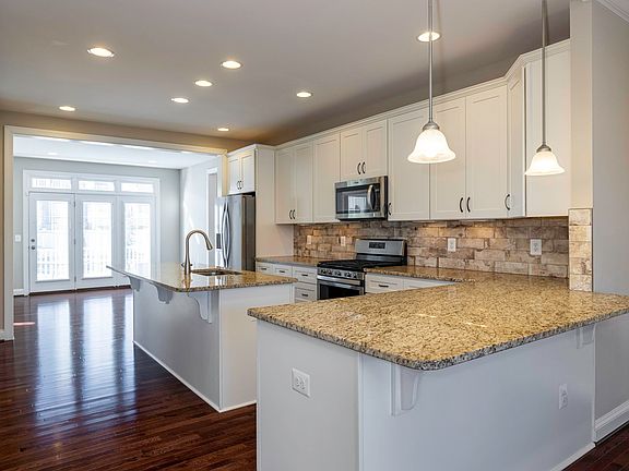 This immaculate, move-in ready Cottage home at Preston Lake with everything you need on the main level, plus plenty of living space on the upper level and in the finished basement, features upgraded landscaping by Shreckhise, a covered front porch and a back deck for dining or entertaining. Enjoy a beautiful, bright, kitchen with upscale, white cabinetry, granite countertops, a tile backsplash, an island with prep sink, and stainless steel appliances including a natural gas cooktop, plus beautiful hardwood floors throughout the main level living spaces. The first floor features the living room, kitchen, dining room, an office area, the primary bedroom suite with a walk-in closet and a luxurious bathroom with dual vanities and a tile double shower, the laundry room, mudroom and a half bathroom. The upper level offers two additional bedrooms, a full bathroom, and a loft area. The finished basement includes a large family room area (wired for home theater), a guest bedroom and full bathroom, an exercise room, storage and much more! Don't miss the many Preston Lake amenities including a clubhouse, pool, walking paths and playground, all just minutes from Sentara RMH, JMU, Merck and Coors!