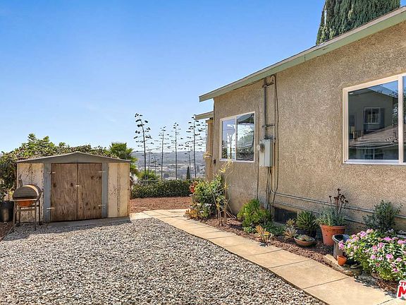 This sweet Cal Bungalow puts you in one of LA's hottest neighborhoods at a great price. The tranquil Glassell Park retreat exudes rustic rocker flair, and boasts views that stretch from Dodger Stadium fireworks to the Griffith Park Observatory. With a hillside cul-de-sac location and street-to-street lot, the property feels like a private compound. Interior features include beautiful wood flooring and an open kitchen finished with white cabinets and a stylish vintage stove. The living room, ideal for entertaining, flows seamlessly to the back porch and flat yard where southwest vistas stretch across NELA and beyond. Updated systems include central heat and a/c, plumbing, electrical and dual pane windows. In the detached garage find the space you always wanted, ready for your workshop, office or music studio. Habitat Coffee, Lemon Poppy Kitchen and the Glassell Park Pool are nearby and it's a quick hop to local favorites.