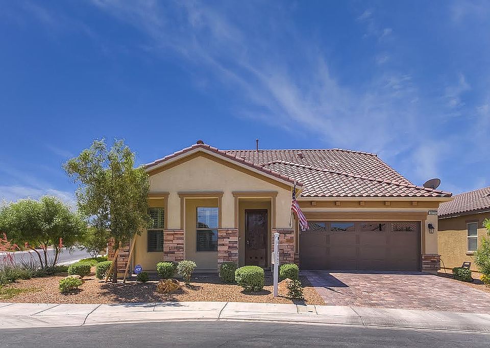 Beautiful one story in lovely Inspirada. Upgraded tile flooring, ceiling fans & shutters throughout. Open kitchen w/KitchenAid SS appliances, double convection oven, 5 burner cooktop, R/O sys, Granite counters, walk-in pantry & island w/breakfast bar. Landscaping w/fruit trees & putting green. Extended length Alumawood covered patio & custom Stonework, paved walkway & driveway. Tankless water heater. ADT security system incl. 2 security cameras.