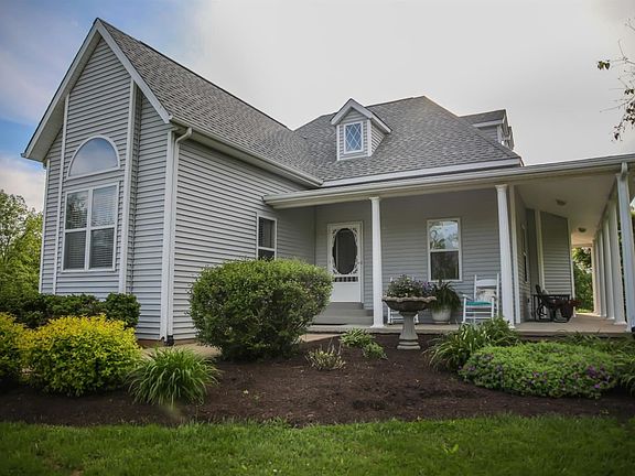 Gorgeous Jeff Ramey Custom Estate Home privately tucked away on 10 acres. Open Floor plan, updated kitchen, wrap-around porch, private pond, pool. Lower level features complete in-law suite with no steps. 2200+ sq ft pole building with Electric & Water rough-in. Too many features to mention, complete with a Dog Wash! Sq/Ft is 2020 per floor.