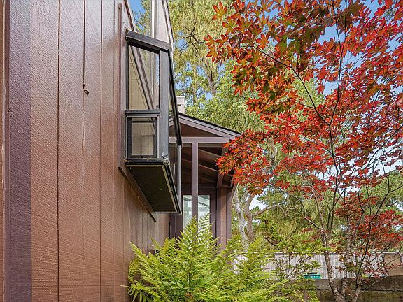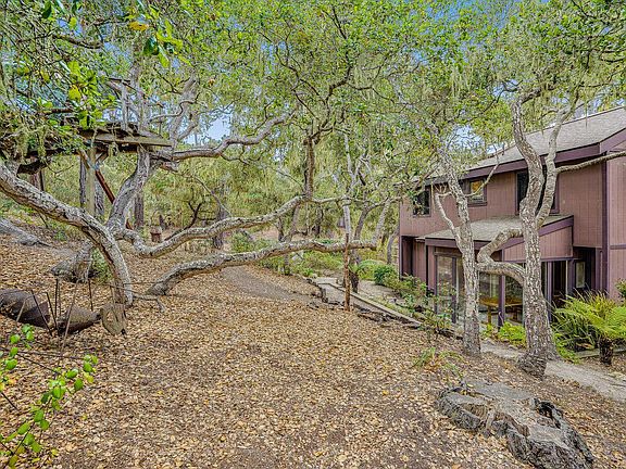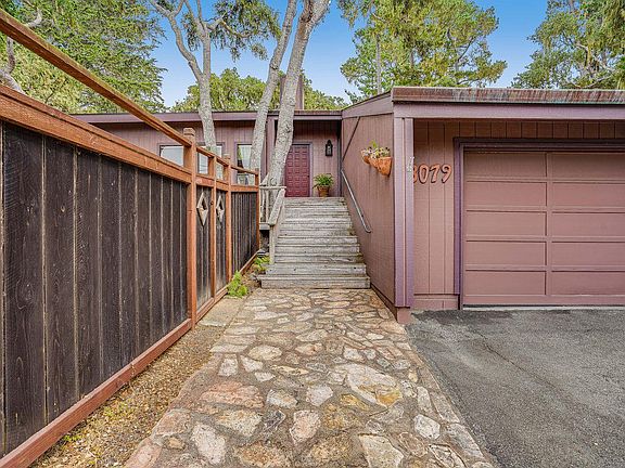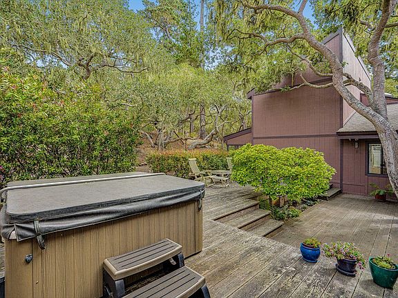 This magical well-maintained Pebble Beach mid century modern home located in the desirable Monterey Peninsula Country Club area boasts high ceilings, the Main Bedroom on main floor, and distant Ocean views over golf course. Floor plan allows for great flexibility for working remotely, with 2 upstairs offices/bedrooms and a full bathroom. Abundant light from west-facing windows, lovely decks and gardens. Low maintenance fenced in front yard with lots of light and privacy. Fully fenced back yard features gorgeous mature oaks, dog run if desired. Sunlit Decks off of kitchen and living room. Living room deck features a working hot tub. This home reveals itself as you meander through..it is fantastic for working remotely, also artists or writers. Previous darkroom, separate artist's workroom. Professional photography scheduled for later this week.