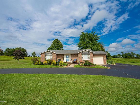 Lovingly cared for & updated Ranch Home in beautiful Bedford, KY! Beautiful landscaping welcomes you to the Front Porch. Enter into the Family Room which leads to the spacious Eat-In Kitchen with Dining Area, walk-in pantry, stainless appliances & bay window allowing for lots of natural light. Laundry Room conveniently located just off the Kitchen. Master Bedroom with updated, en suite Master Bath featuring a walk-in shower & linen closet. Two additional Bedrooms & a second updated Full Bath round out the interior space. Enjoy the peaceful country views from either the front porch or the Patio overlooking the backyard with firepit. One car garage. Seller to furnish a one year home warranty!